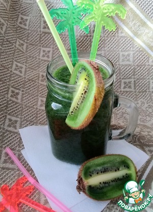 Смузи с киви. Смешиваем все ингредиенты с помощью блендера. Добавляем мед по вкусу и желанию. Кисло-сладкий, бодрящий вкус!