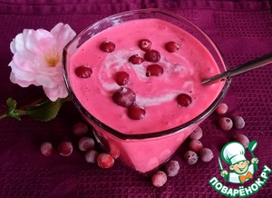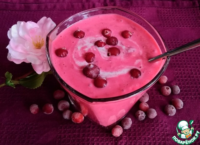 Смузи с клюквой. Просто все смешиваем с помощью блендера. Можно добавить свежие ягоды в готовый койтейль, если любите покислее. Сливки смягчают вкус клюквы. Целый стакан клюквы просто так мало кто осилит, а в виде такого коктейля - пожалуйста. И никакой тепловой обработки. Угощайтесь витаминами!