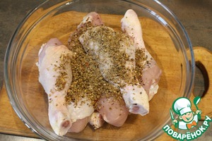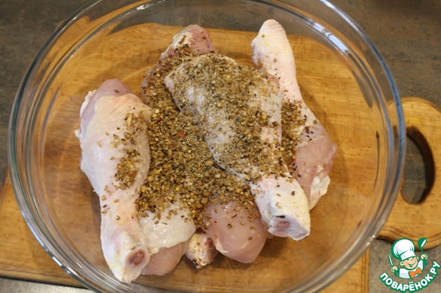 Небольшое предисловие: как я уже упомянул этот традиционный марсианский рецепт был мне любезно предоставлен во время последнего полёта по обмену опытом на эту прекрасную планету. Приём был очень тёплым и радушным, что способствует сближению и дружбе наших двух цивилизаций. В подробности вдаваться не буду, это долгий и отдельный разговор с самыми прекрасными впечатлениями и воспоминаниями! Давайте приступим непосредственно к самому блюду. Сначала о том, что мы будем готовить. То, что Вы увидели на главной фотографии к блюду не что иное как марсианская восьминогая летающая птица. Из-за разности в планетарном масштабе выговорить её название на нашем земном языке не предоставляется ни какой возможности. Назовём её Восьминогая Инопланетная Курица (ВИК). Курица потому, что по своему вкусу очень напоминает именно нашу земную птицу отряда куриных. Кстати, рекомендую этот рецепт восьминогой инопланетной курицы молодёжи, для всяких там PARTY, тусовок - с этим космическим рецептом вы будете на высоте, в фаворе! Итак, для начала хорошо промоем и очистим кожу и перья - нам ведь не нужно чтобы марсианская грязь и пыль попали в наш земной организм. Хорошо присыпим специями, так же хорошо вотрём каждую ножку и отставим в сторонку примерно на пол часа при комнатной температуре.