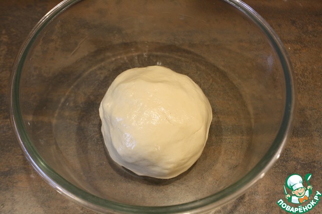 Тесто вымешиваем минут пять. Должно получится мягким, не липнущим к рукам. Затем берём емкость, в которой будет подниматься наше тесто, смазываем растительным маслом, смазываем маслом тесто и отставляем для подъёма в тёплое место примерно на час прикрыв полотенцем.