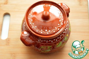 Накройте горшочек крышкой, поместите в холодную духовку. Включите духовку на 200°С.