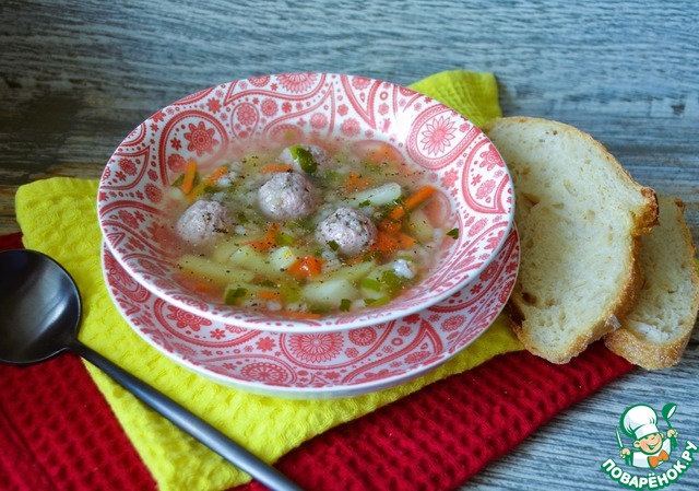 Рецепт «Овощной суп с фрикадельками и рисом»: