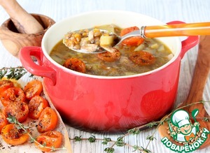 Конечно, суп ни разу не Канадский, но чечевица именно Канадская. Впервые варила суп с этой чечевицей, классная штука, она совершенно не разваривается. И впервые подавала суп так, со слегка, скажем, подвяленными помидорами. Вкус божественный. Заходите в гости, налью тарелочку!