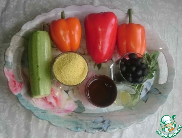 Кус-кус - очень прост в приготовлении и прекрасно сочетается со многими продуктами. Предлагаю попробовать закуску из болгарского перца, фаршированного кус-кусом и цуккини. Тем более - постное блюдо.