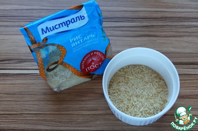 Рис промыть и сварить в подсоленной воде до готовности. -