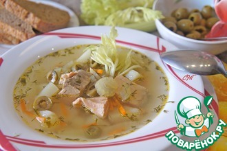 Выкладываем в суп подготовленную рыбу, все вместе варим еще минуты три, пробуем на вкус. Если лечо не острое, можно добавить по желанию и вкусу перец чили.