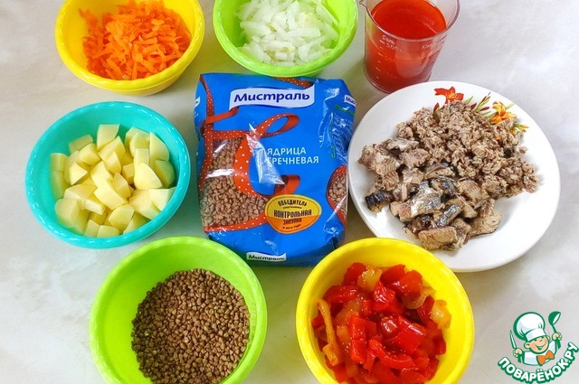 Ингредиенты для «Гречневый рыбный суп с лечо»: