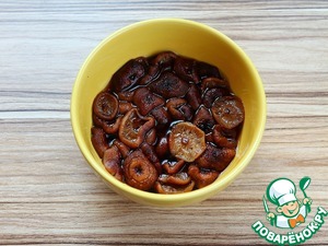 • Грибы замочить в теплой воде минут на 10-15. Воду слить, грибы промыть.