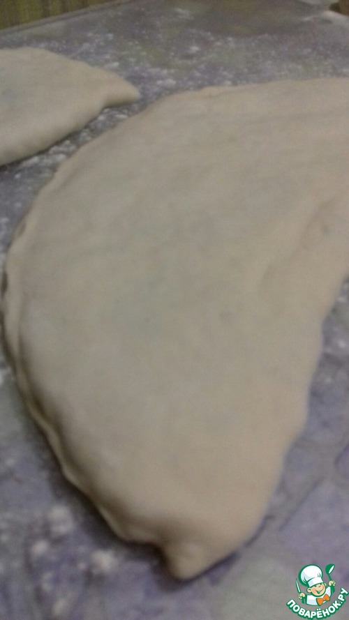 • Тесто тонко раскатать. На половину теста выложить начинку. Сложить пополам и защипать как чебурек.