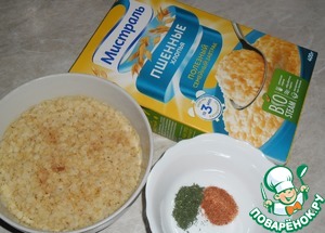 Пшенные хлопья от ТМ Мистраль залить горячей кипяченой водой, добавить паприку и соль, перемешать,