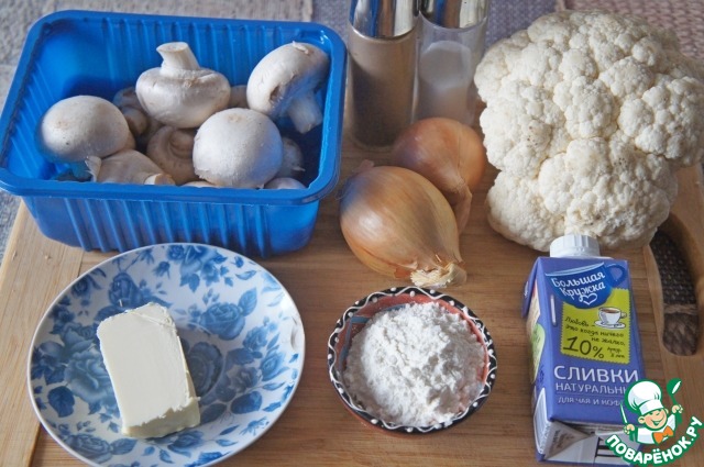 Ингредиенты для «Суп-велюте из цветной капусты с шампиньонами»: