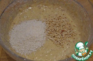 Арахис и кокосовую стружку. Тщательно перемешать.
