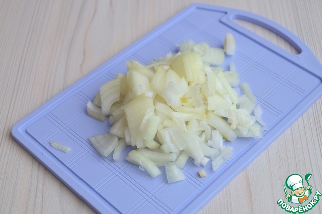 Репчатый лук (1 шт.) нарезать полукольцами.