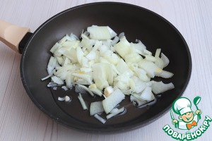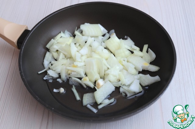 На сковороду добавить 4 ст. ложки растительного масла, добавить нарезанный лук.