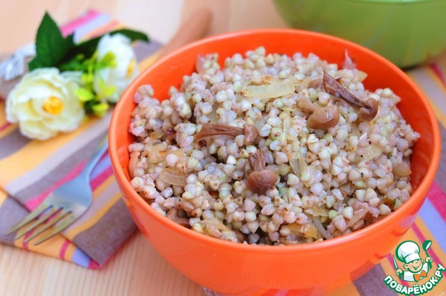 Рецепт «Каша из зеленой гречки с опятами»:
