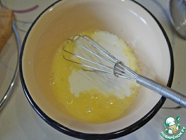 Яйца взбить со сливками, добавить по вкусу соль, перемешать.