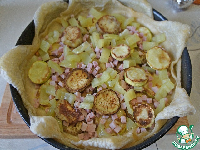 Рецепт «Сытный овощной пирог из слоеного теста»: