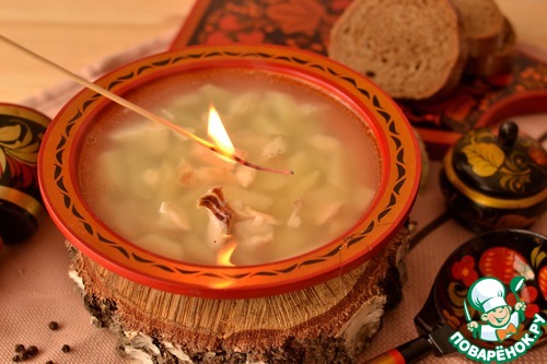 Все мое детство и юность прошли среди рыбаков- дедушка "специализировался" на озерной рыбе-карасиках, карпах, а папа- на волжских хищниках- судаках и щуках. Конечно же, самые незабываемые воспоминания детства- это совместная рыбалка. Дедушка всегда, когда варил уху, добавлял водку и тушил головешку из костра в котелке с ухой. Уха приобретала неповторимый аромат костра! Решила я дома повторить этот опыт, конечно же, не совсем то же самое, что уха из котелка, но все же.