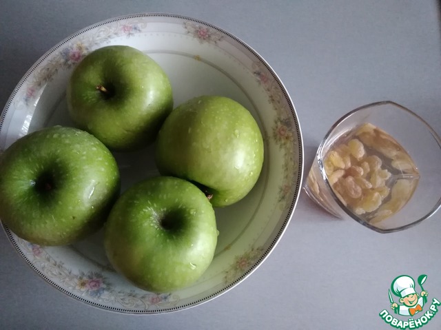 • Изюм замачиваем минут на 20. Яблоки моем.