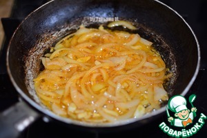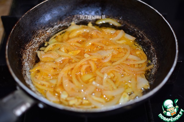 Лук и чеснок обжарить на масле с добавлением паприки.