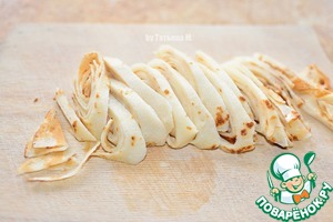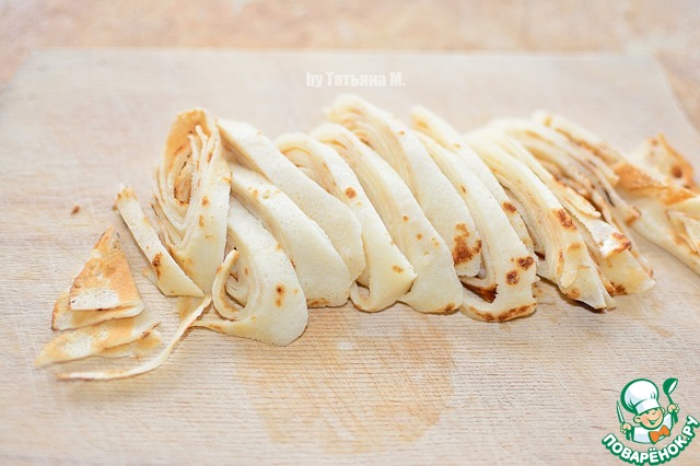 Блины свернуть рулетом и порезать на лапшу.