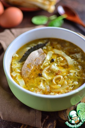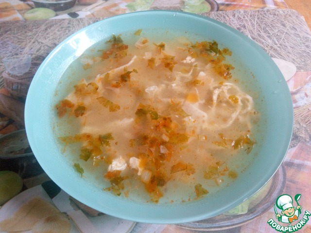 Рецепт «Мясной суп с блинами и яйцом»: