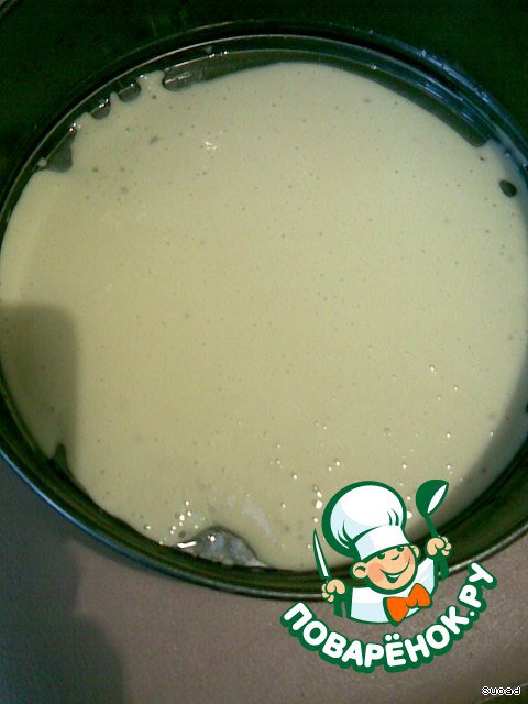 Сверху вылить оставшееся тесто и запечь в разогретой духовке при 180-200 гр. 25-30 минут, до сухой палочки.