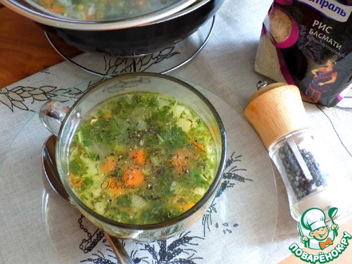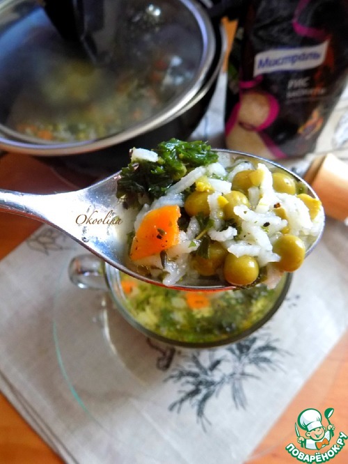 Ингредиенты для «Рисовый суп с зелёным горошком»:
