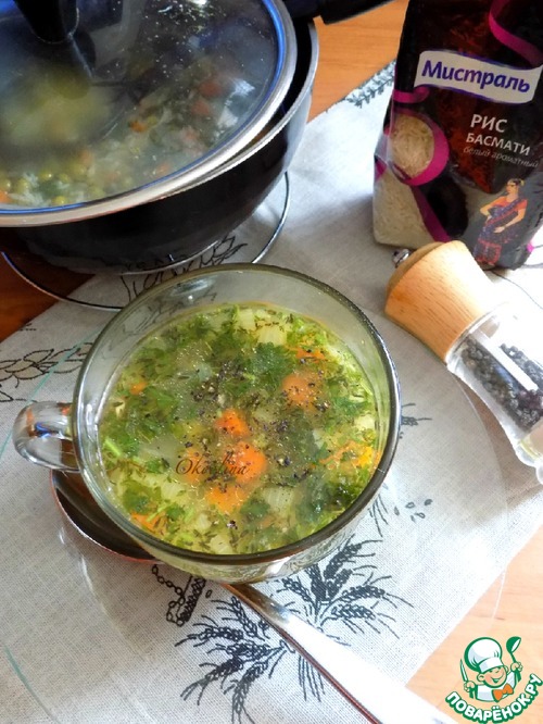 Для супа я выбрала рис Басмати белый ароматный ТМ МИСТРАЛЬ. Этот рис как никакой другой лучше всего подходит для этого супа, хотя его конечно можно заменить, за неимением и возможности купить.