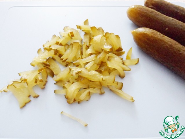 Переложить в сотейник, залить небольшим количеством воды, припустить до испарения воды в течение 5 минут. Затем добавить огуречный рассол. Прокипятить. Огурцы для рассольника готовы.