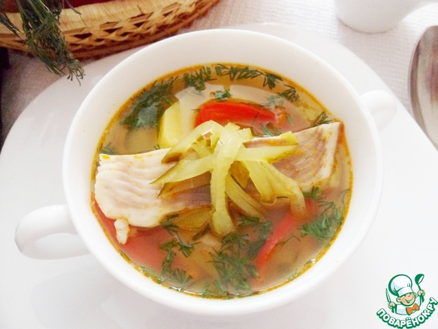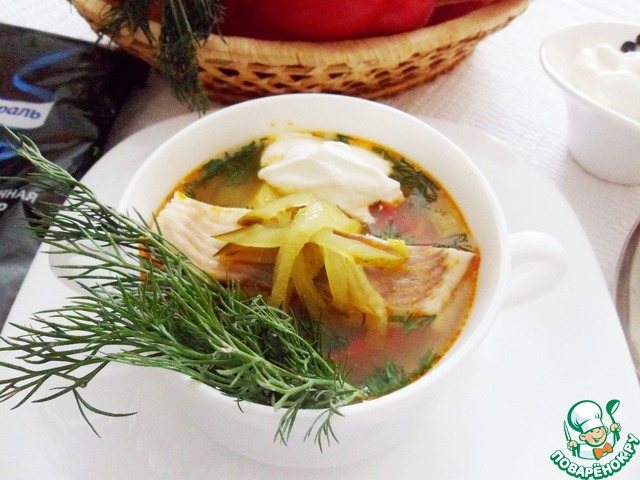 Рыбный рассольник с булгуром готов. Подавать на стол горячим, посыпав зеленью.