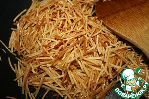 На другой сковороде растапливаем 3 ст. л. масла растит. и обжариваем до золотистости вермишель.