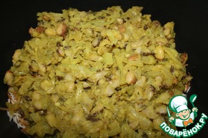 Затем выкладываем слой фасоли и укрываем рисом.