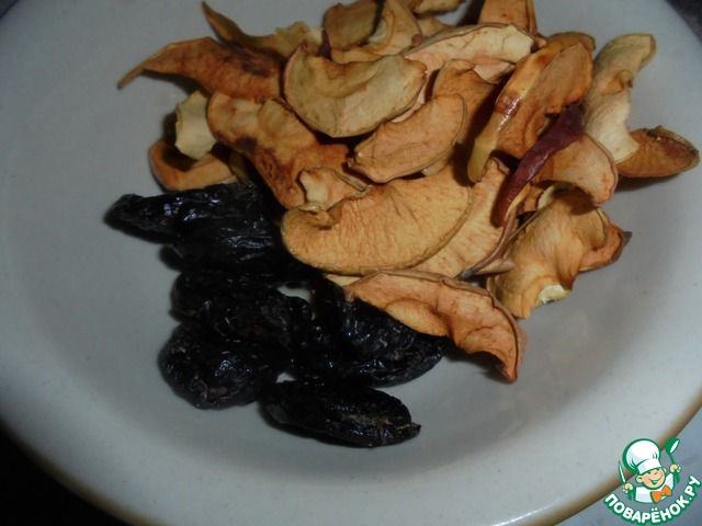 Залить чернослив и яблоки водой, довести до кипения и проварить 3-4 минуты до размягчения сухофруктов. Скинуть отваренные сухофрукты на дуршлаг.