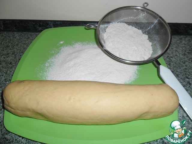 Можно тесто раскатать в пласт и выдавить формой кружочки, но мне удобнее нарезать жгутик на части.