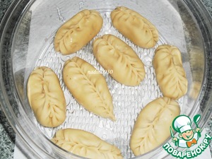Готовые манты окунаем "брюшком" в растительное масло и выкладываем на решетку пароварки.