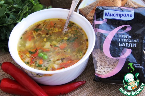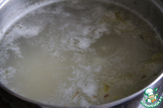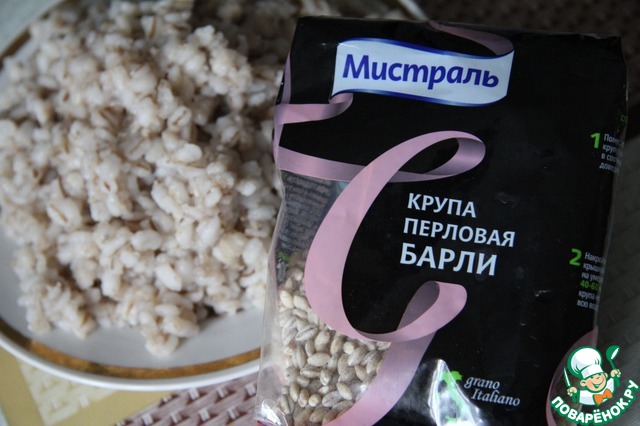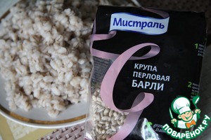 В бульон добавить картофель и, предварительно замоченную перловку, готовить еще 30 минут. Я же, отвариваю до готовности перловую крупу заранее, затем ввожу ее в бульон.