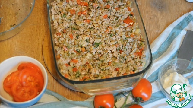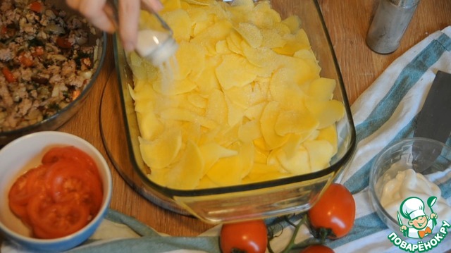 Рецепт «Картофель, запеченный с фаршем и грибами»: