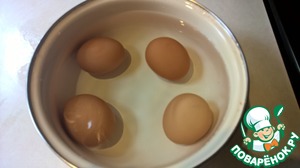 Из Су Вида, по истечении 13 минут ложкой достаем яйца и кладем в мисочку с холодной водой, чтобы остановить готовку.