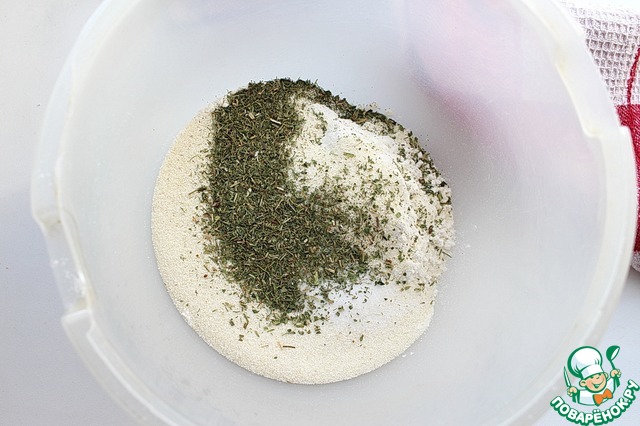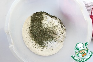 Смешать манную крупу, пшеничную муку, соль и специи.