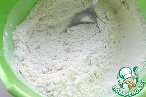 Смешать муку, разрыхлитель, специи (перец, корица, анис и кориандр), измельченные грецкие орехи (не мелко).