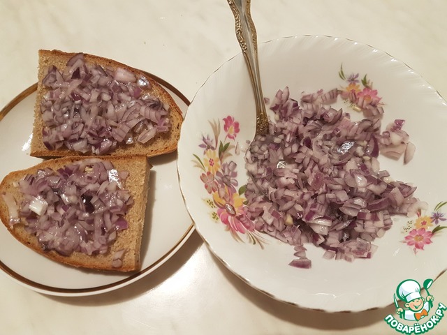 Рецепт «Гороховый суп с луковым бутербродом»: