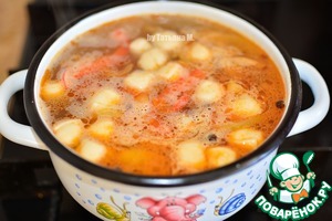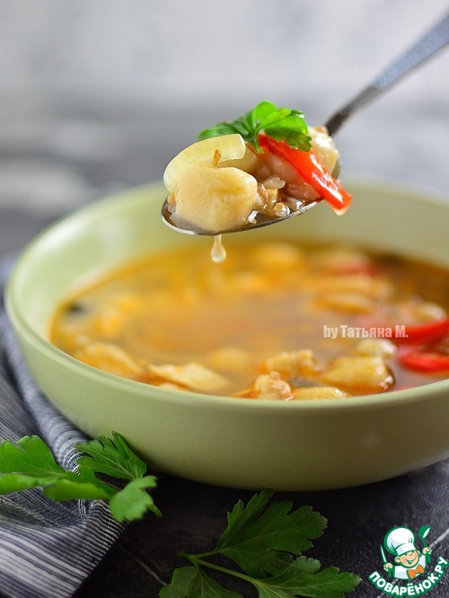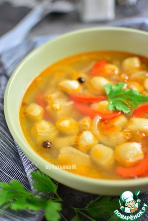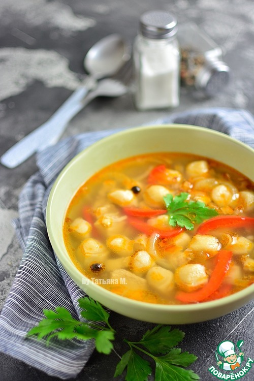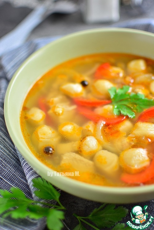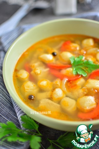 Вот честно впервые попробовала отваривать слоеное дрожжевое тесто, и уж тем более применить его в супах! Но, наткнувшись на днях в инете на рецепт с отварным слоеным тестом, решила тоже попробовать, и вы знаете - вкусно! Не хлопотно и быстро получается довольно сытный, ароматный супчик для всей семьи, в том числе и для детей!