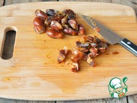 Финики залейте кипятком на 10 минут, затем удалите косточки и нарежьте мелко |