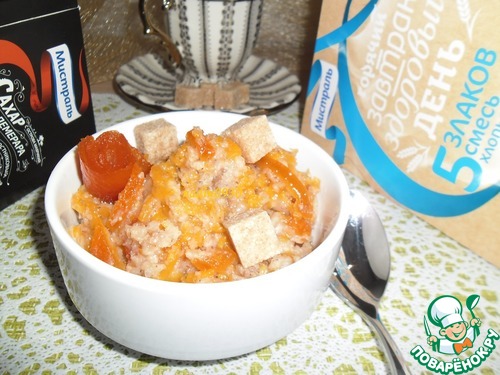 Что может быть проще, чем приготовить кашу из хлопьев? Тем более, что в Пост её готовят на воде. Предлагаю затратить чуть больше времени, но ваши усилия будут вознаграждены очаровательным вкусом, и порадуют ваших близких. После такой каши заряд бодрости и энергии обеспечены на весь день. Попробуйте, сколько в ней полезного и вкусного - многозерновые хлопья, тыква, варенье из мандаринов!