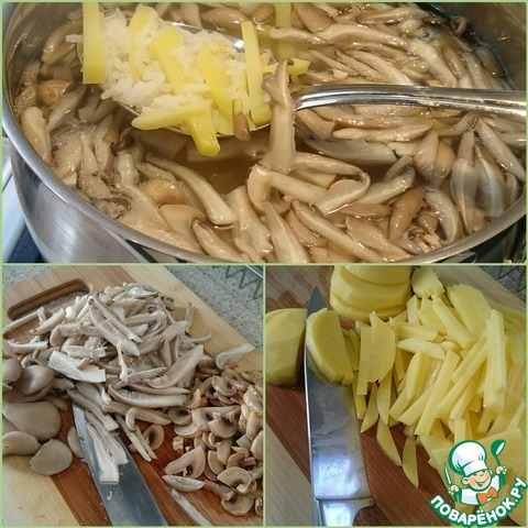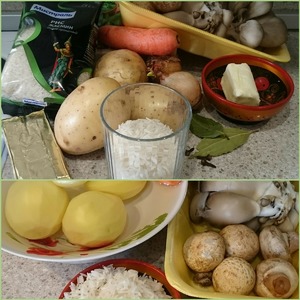 На фото продукты необходимые для приготовления супа. Грибы можно брать любые, у меня вешенки и шампиньоны. Сыр плавленный, тоже любой, но вкуснее и ароматнее если он будет с грибным вкусом.