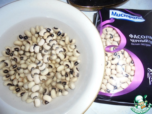 Фасоль черный глаз замочить в воде на ночь.
