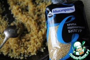 Обжарить булгур на сковороде или в толстостенной кастрюле в растительном масле в течение 2 - 3 минут, помешивая.