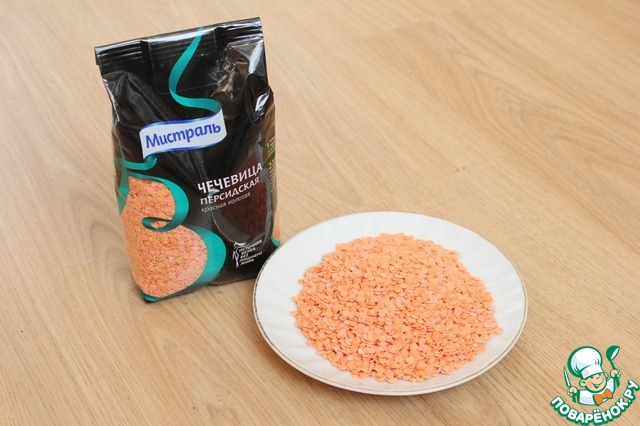 Пока печется перец, красную колотую чечевицу Мистраль промываю в воде.