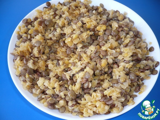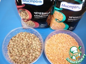Для приготовления паштета я взяла смесь двух видов чечевицы: чечевицу "канадскую" - зеленую крупную и чечевицу "персидскую" красную колотую МТ "Мистраль".